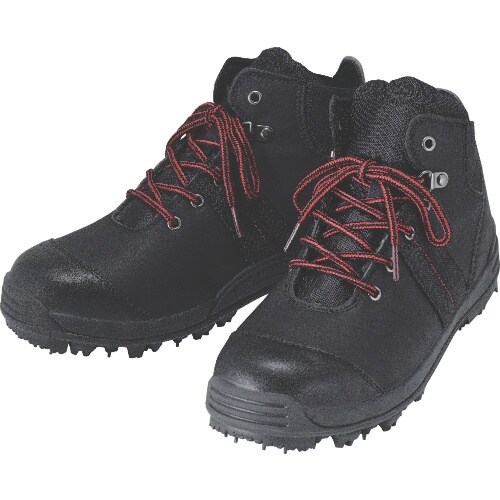 片足15本(外観上は30本)の鋼製スパイクピン付きです。撥水加工しております。脱ぎ履きしやすいシューレース+サイドゴアになっております。林業・法面作業に。 |