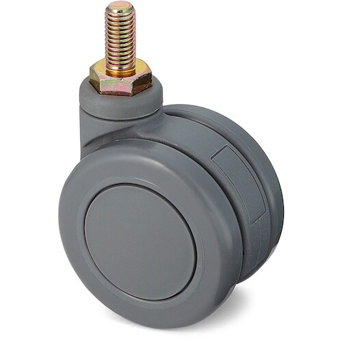 ロック機構はトータルロック方式で、車輪の回転と取付部の旋回を同時にロックします。車輪の外周面はポリウレタン製で、微振動や音を吸収し、ソフトで静かに回転します。