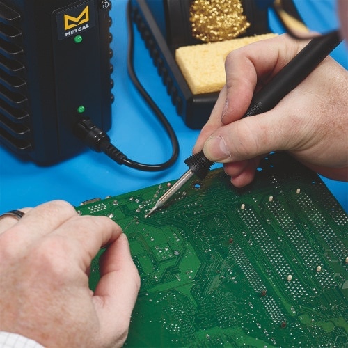 1ポート出力で半田付作業が可能です。自動熱量制御により作業接合部の温度を過剰加熱せず、安全に作業が可能です。 |