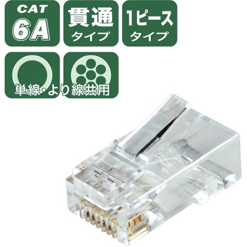 10Gbps対応のカテゴリー6A準拠品です。適切な配線順序を簡単に確認できます。8芯丸断面のケーブルに使用できます。ツメ(ラッチ)を曲げても折れにくいポリカーボネート製ボディです。 |