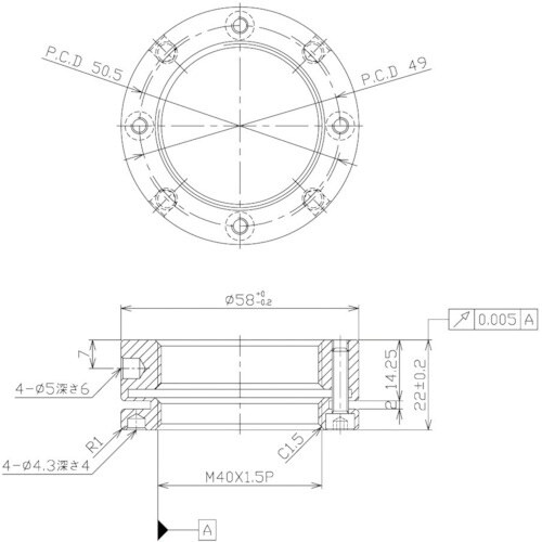 その他仕様:キャップボルト規格4−M4×16 | 硬度:HRC28−32 | ネジ精度:ISO 4H | 振れ精度:5μm以下 | 材質・仕上げ:クロ…