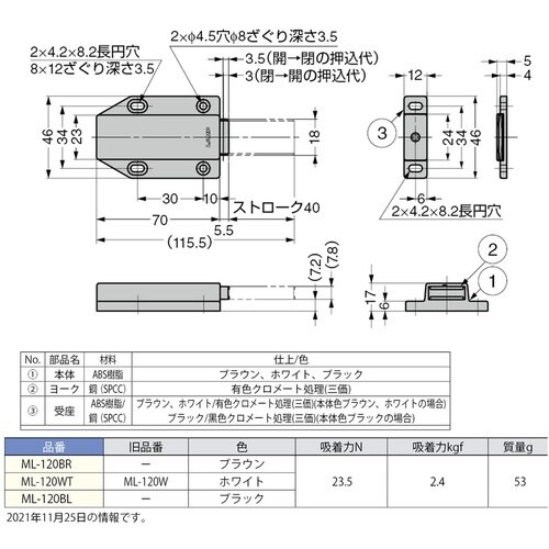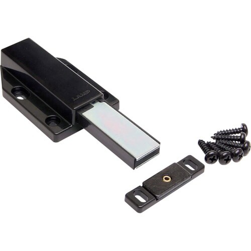 ブラックが新しく加わりました。ストロークの大きいマグネラッチです。大きな扉用です(W600×H1800×t30扉での作動確認済み)指先で軽く押すだけで扉の開閉が可能です。 |