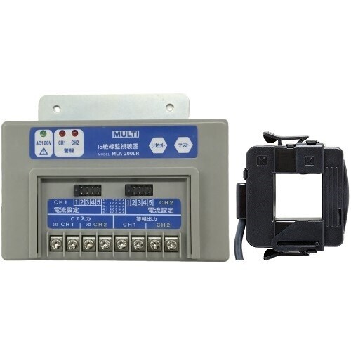 漏電設定値 50/100/200/400/800mAの5レンジです。漏れ電流が設定値以上に達した際に警報を発信します。分割型ZCT×2個付属です。取付に便利なマグネット付です。 |