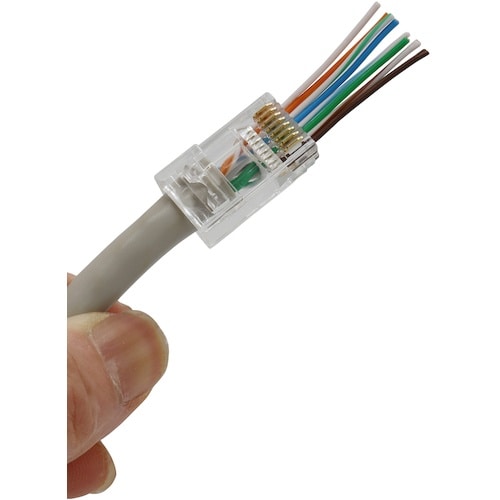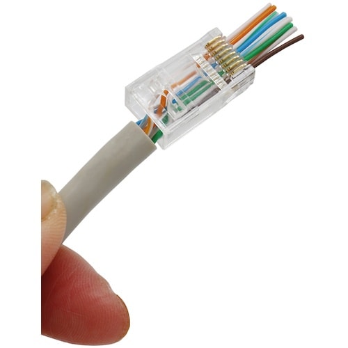 貫通式のため、ケーブルの長さ調整が不要で配線確認がしやすく、確実に結線作業が出来ます。金メッキ層を持ち、耐久性が抜群です。通信用プラグとして。 |