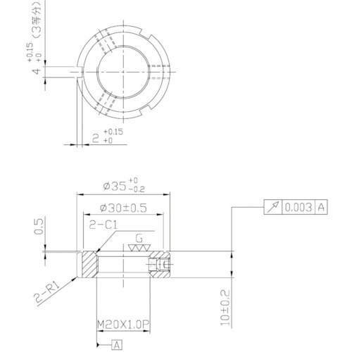 精密ロックナットは、ベアリング固定用ナットですが、精度を要する回転体にその効果を充分に発揮できます。軸方向に対しセットスクリューが直角になっており、且つ3分割(120度等配)の設計となっております。