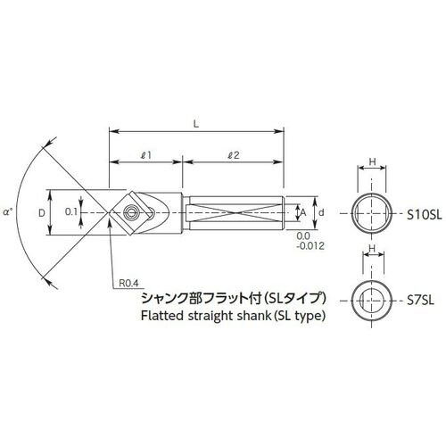 | 注意事項 | ※破損する危険が有るので、カバーや保護メガネなどの保護具をご使用ください。切りくずの飛散、巻付などによるけがにご注意ください。インサートチップの着脱には十分ご注意ください。シャンクの上下面にフラット面を設けてあります。 |