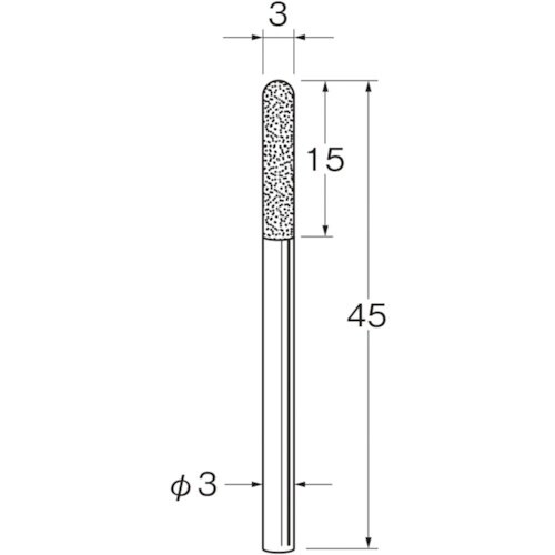 粒度(#):150 | 刃径(mm):3 | 刃長(mm):15 | 軸径(mm):3 | 全長(mm):45 | 最高使用回転数(rpm):8700…