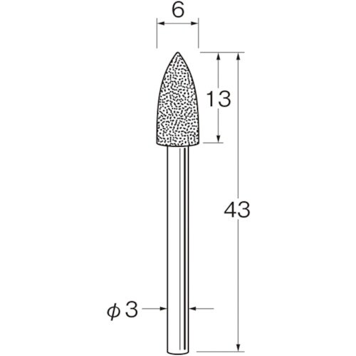 粒度(#):150 | 刃径(mm):6 | 刃長(mm):13 | 軸径(mm):3 | 全長(mm):43 | 最高使用回転数(rpm):5000…