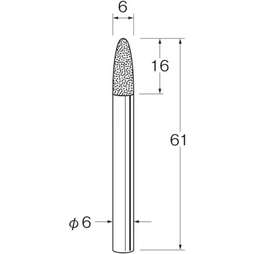 粒度(#):120 | 刃径(mm):6 | 刃長(mm):16 | 軸径(mm):6 | 全長(mm):61 | 最高使用回転数(rpm):7200…