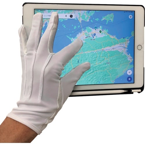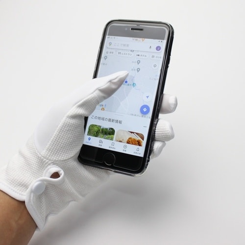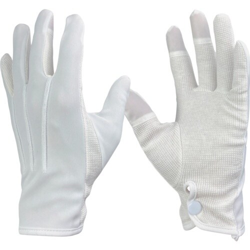 タッチパネル対応の接客用手袋です。手のひらにはドットパターンの滑り止め付きフォーマルな外観をもちながら、作業性を大きく向上しています。