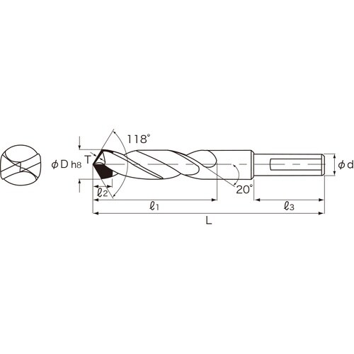 刃先は超硬付刃(K20)とノスタイプボディーの採用で経済的で長寿命、高能率加工が可能です。先端超硬付刃のドリルチャック 13用ドリルです。