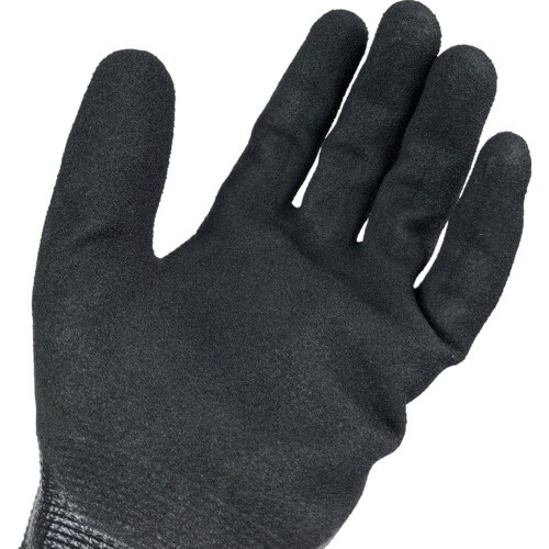 炭素系材料を配合し、製法特許を取得した自社生産の高強力ポリエチレン繊維(METALQを使用しており、耐切創性に優れています。手の甲までコーティングしているので、油やゴミの侵入をしっかり防ぎます。
