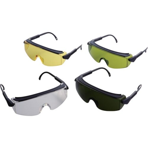 眼鏡をかけたまま、ご使用いただけます。つるの長さ角度の調節が可能です。目に有害な紫外線を99.9%カットするレンズを使用しております。粉じんや飛来物が発生する可能性のあるあらゆる作業現場等に。 |