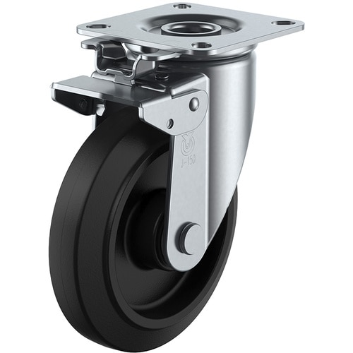 取付ピッチが自在、自在ストッパー付、固定式共に同一です。軽量で走行性に優れたナイロンホイルゴム車輪を使用しています。台車、ワゴンなどに。 |