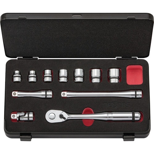 nepros 9.5sq.ソケットレンチセット(11点)(ケース付) (インチ) 6角 ケース間口275×奥行150×高さ50mm