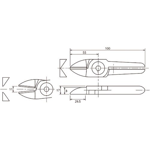刃先が傾いていない直立型の金属用ブレードです。金属の切断、かしめ作業に。