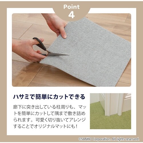 おくだけで取り付け、取り外し簡単。スペースに合わせて組み合わせ自由に敷いていただけます。ハサミで手軽にカットできます。カットしてもほつれません。