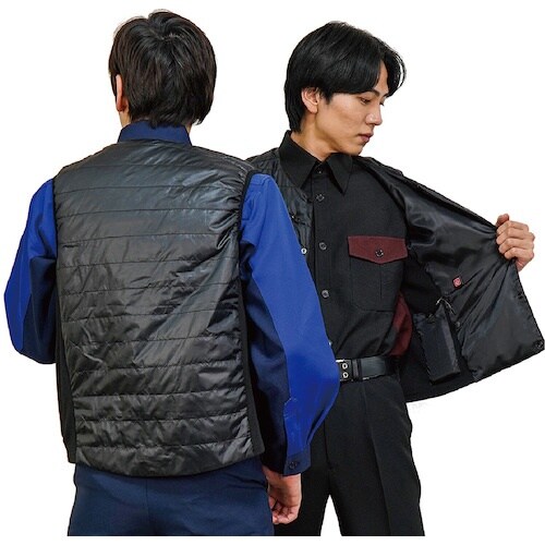発熱配線に東レの高性能炭素繊維トレカ糸を採用し、素早い熱の伝導性を高めるとともに、安定した発熱により安全性を高めた光沢のある黒系のシックなデザインのヒートベストになります。