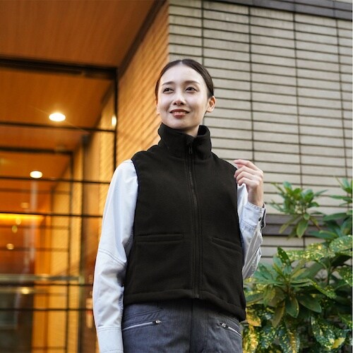 岡潮 黒色フリース発熱ベスト+モバイルバッテリー1