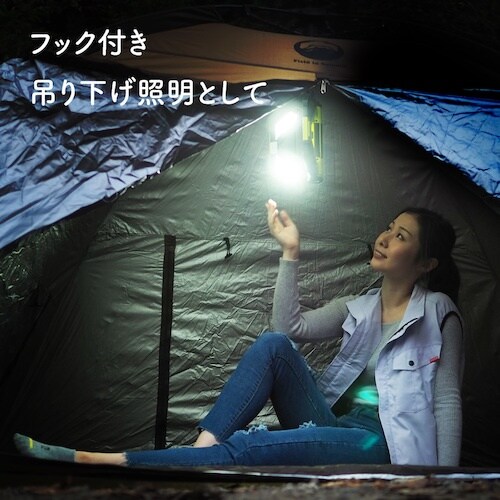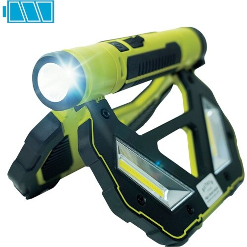 現場作業での手袋を装着した状態で使用しやすいデザインの充電式LED投光器です。懐中電灯から広げれば800ルーメンのLED投光器、赤色点滅ハザードライトまで形状を変化させ自由自在に光を操れます。 |