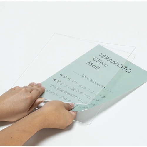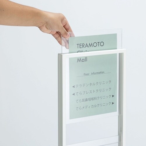 1台で上下2段、両面使用で最大4面の表示が可能。エントランスをすっきりした印象にする案内板です。 |