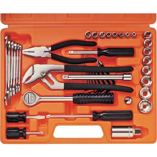 便利でハードなツールを無駄なく収納したツールセットでDIYユーザーからプロまで幅広く対応しています。外箱には各工具の使用説明がイラスト付きで掲載されているので、ビギナーでも安心です。 |