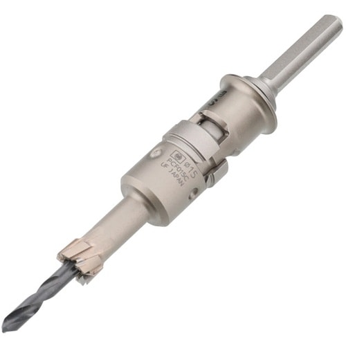 超硬刃先でステンレスなどの被削材への穴あけが可能です。独自の刃先設計により切り粉の排出が良好です。ボディーのふところが深く、金属パイプなど曲面への穴あけが可能です。