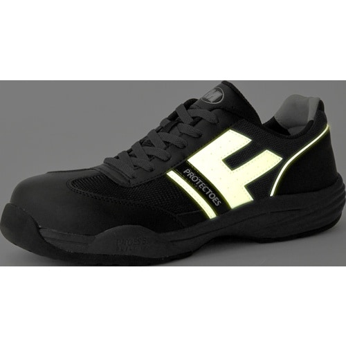台車作業等から小指も保護出来る国際特許出願中の先芯を搭載しています。冷えやさびの問題が無く、軽量の樹脂製先芯です。ミッドソール一体型のサイドバンパーが台車からの衝撃からアッパーを守ります。倉庫業。 |