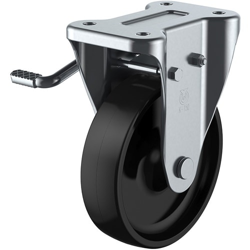 ユーエイ プレート式 固定 キャスター フェノール 車輪径100mm ストッパー付き Jタイプ KB(L)型 取付寸法80×45