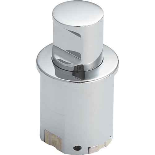 つまみを押し込むとフラットになり、扉表面の突起がないためデザイン性に優れ、安全です。扉を閉め、つまみを押し込むと扉は施錠されます。再びつまみを押すと扉は解錠します。右吊元用、左吊元用があります。 |