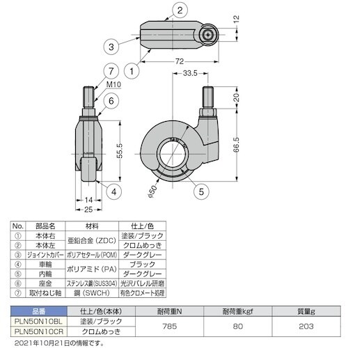 スガツネ工業 SUGATSUNE (200022218)PLN50N10BLPLNキャスター A01A-1387