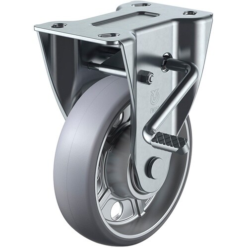 ユーエイ プレート式 固定 キャスター アルティメットウレタン 車輪径200mm ストッパー付き PMタイプ PMR−LB(R)型 取付寸法112×63