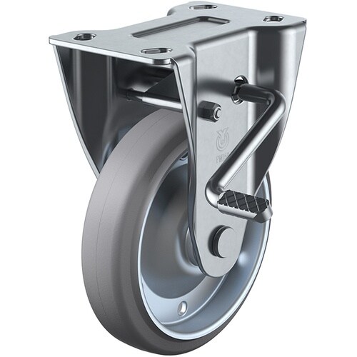 ユーエイ プレート式 固定 キャスター グレーゴム 車輪径200mm ストッパー付き PMタイプ PMR−LB(R)型 取付寸法112×63