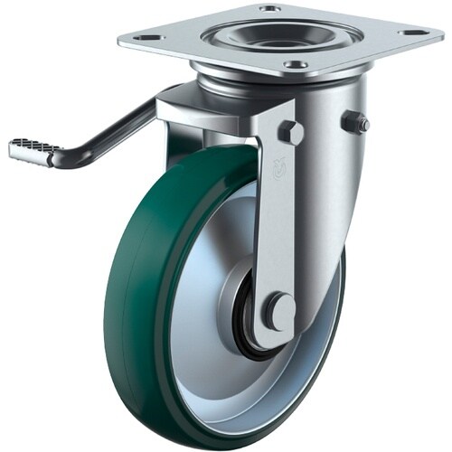 ユーエイ プレート式 自在 キャスター ウレタン 車輪径200mm ストッパー付き PMタイプ PMS−LB(L)型 取付寸法120×120(105×105)