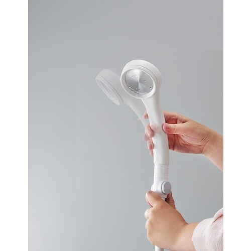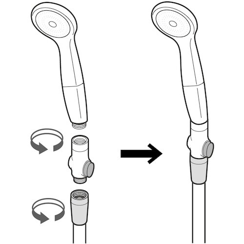 今お使いのシャワーヘッドに取付けるだけでストップ機能付きに早変わりする商品です。ちょっと止めたいときに手元で簡単にストップできます。ボタン部とヘッド部が独立しているので、ヘッドが360°回転します。 |