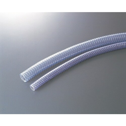 硬鋼線の補強により耐久性を向上させています。透明でホース内の流体物を確認できます。耐油性に優れています。(注:燃料油には使用できません。)食品衛生法適合品です。 |