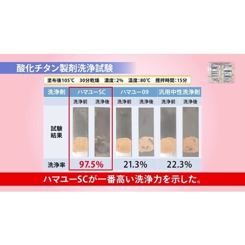 優れた洗浄力を発揮する液体アルカリ洗浄剤です。配合成分のバランスにより非劇物でも低濃度で十分な効果を発揮します。優れたキレート力で付着したスケールを落とし、またスケールの付着防止効果も高めました。 |
