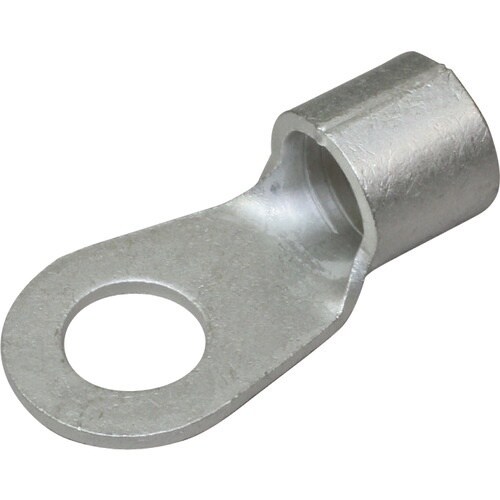 接触面(舌部)が丸く、ねじ固定用の取り付け穴がある裸圧着端子です。軟鋼のより線電線の接続に。