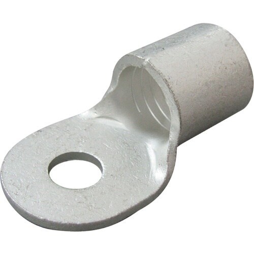 接触面(舌部)が丸く、ねじ固定用の取り付け穴がある裸圧着端子です。軟鋼のより線電線の接続に。