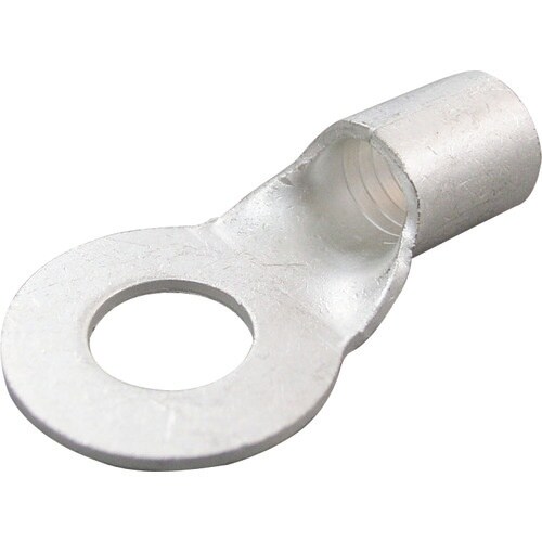 接触面(舌部)が丸く、ねじ固定用の取り付け穴がある裸圧着端子です。軟鋼のより線電線の接続に。