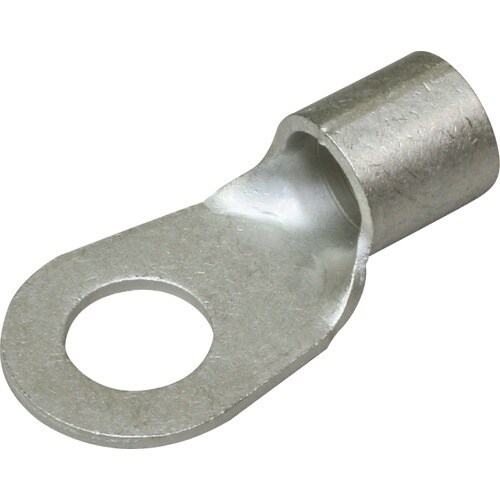 接触面(舌部)が丸く、ねじ固定用の取り付け穴がある裸圧着端子です。軟鋼のより線電線の接続に。