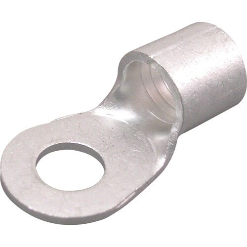 接触面(舌部)が丸く、ねじ固定用の取り付け穴がある裸圧着端子です。軟鋼のより線電線の接続に。