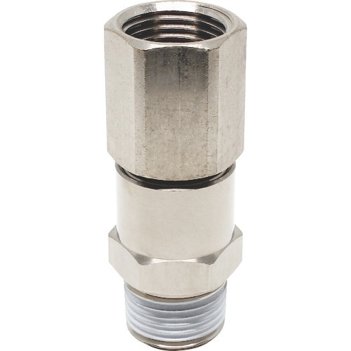一般空気圧配管の高速回転部用ワンタッチ継手です。回転部にはベアリングを2個使用しています。動きの速い揺動部、高速回転部に最適です。