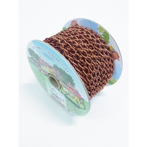 リンクを90度ひねったチェーン、仕上がりの美しさと扱いやすいチェーンです。リールに巻いている製品のため、使用時に絡まりにくいです。電着塗装しており、カラフルです。 |