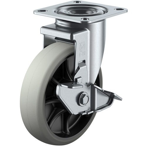 ユーエイ プレート式 自在 キャスター ウレタン 車輪径125mm ストッパー付き Jタイプ RJ2−S型 取付寸法80×80(75×75)
