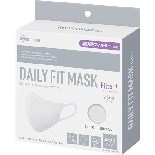 アイリスオーヤマ IRIS 200970 デイリーフィットマスク フィルタープラス ふつう 20枚入 ホワイト A01A-4075