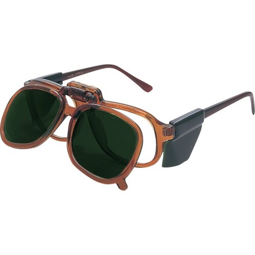 複式レンズ(外:遮光、内:透明)を採用しているため、遮光メガネとしてだけではなく、保護メガネとしても使用できます。ガス溶接などに。 |