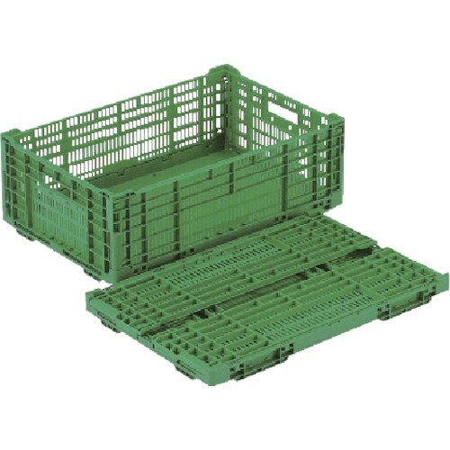 薄型、メッシュタイプの折りたたみコンテナです。通気性、洗浄性に優れたコンテナです。農産物の予冷に適しています。底面はベタ面です。側面4コーナーでロックします。折りたたむと高さ1/3ー1/5になります。 |