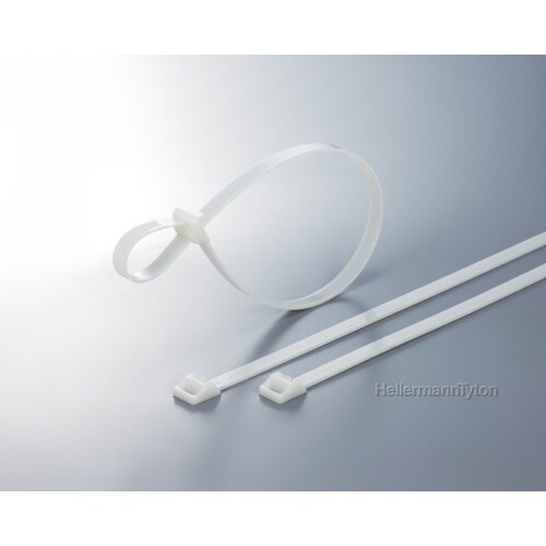 長尺、太径タイプでリリース可能な結束バンドです。結束後のバンド余長部分は、ヘッド上部の差込口に収納できます。ケーブルトレイへの導管や、太径電線の固定に使用する重産業用ケーブルタイです。 |