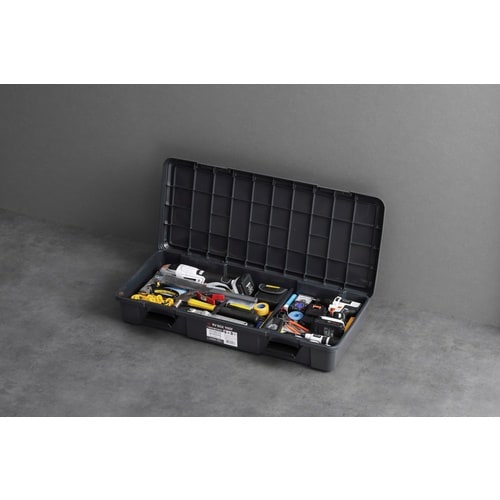 カー&レジャー用品を収納するのに最適な薄型のRV BOXです。スタッキング可能な浅型タイプです。RVBOX450F2つと重ねて使えます。仕切り板付きで小物収納に最適です。多目的収納に。 |